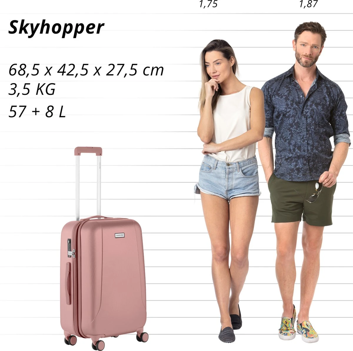 De CarryOn® Skyhopper is een échte klassieker. Al jaren behoort deze iconische koffer tot de meest verkochte koffers van Nederland. De ‘Skyhopper’ is zéér slagvast, heerlijk licht en erg veilig door het internationaal erkende TSA-cijfercombinatieslot. Een luxe interieur, vier dubbele ‘soft wheels’, OKOBAN-registratie, een expander met 8 ltr extra inhoud op de middenmaat zwart, champagne, olijf, blauw en roze en stevige ritsen, een verstelbare trolleystang én drie jaar garantie maken deze bewezen Nederlandse kwaliteitskoffer helemaal af. Wil je meerdere koffers? Pak je prijsvoordeel door te zoeken op Skyhopper kofferset. Meerdere combi’s mogelijk.