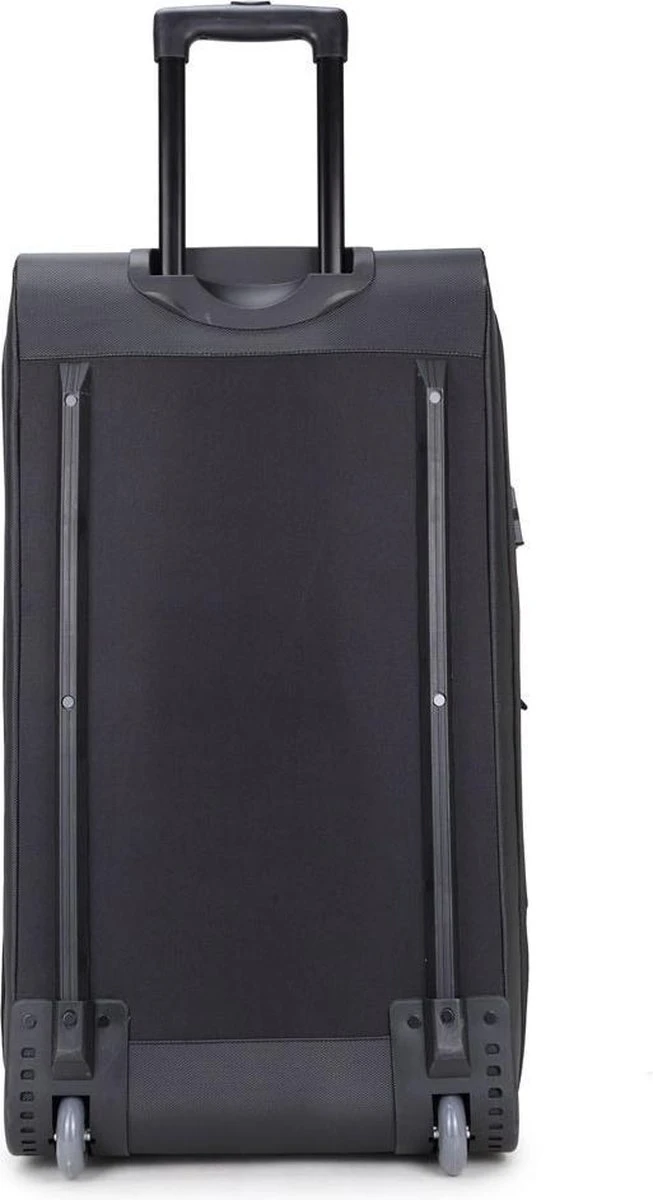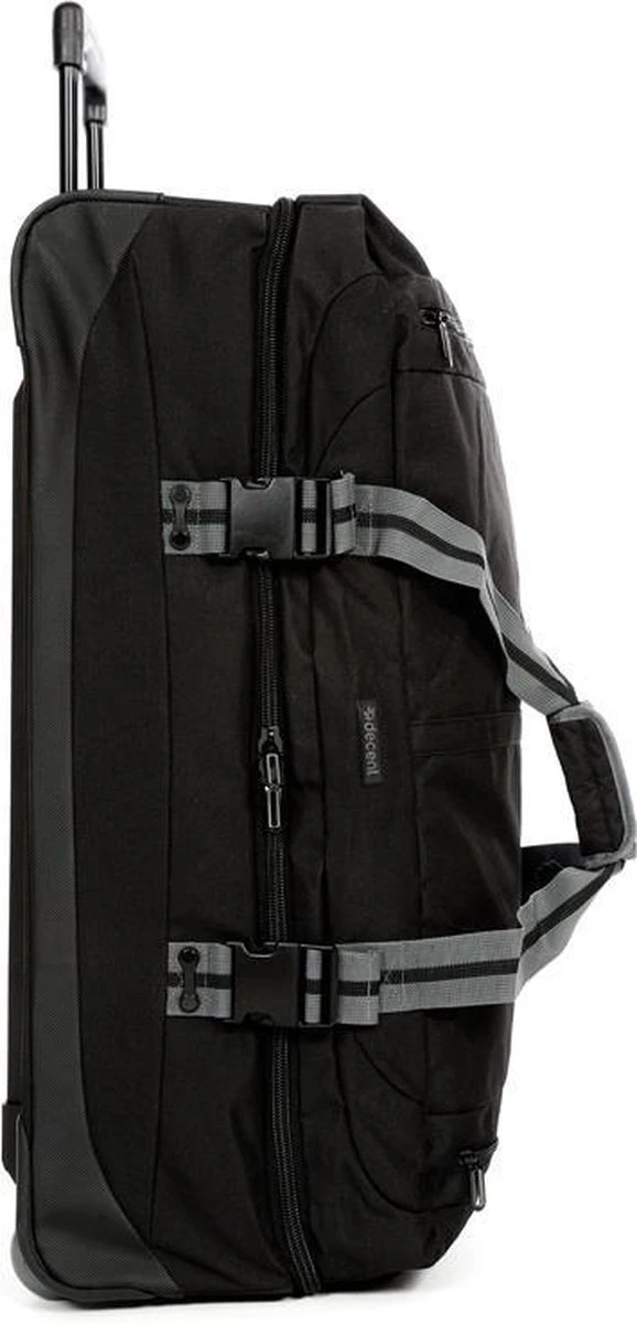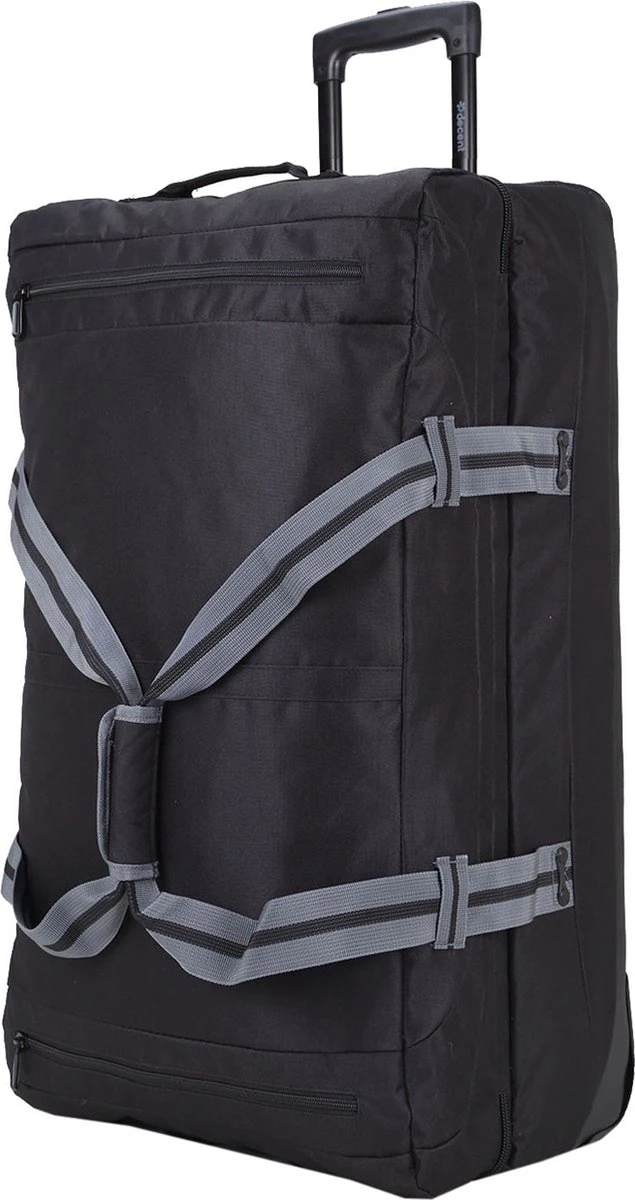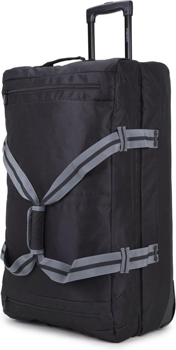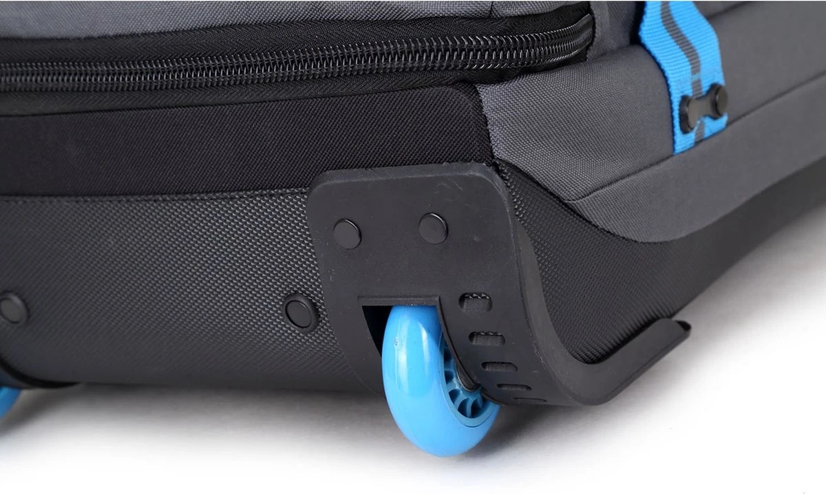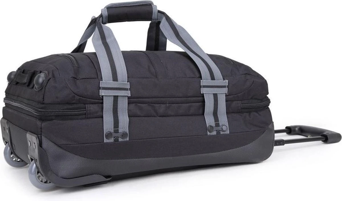 Kenmerken:Twee gescheiden hoofdcompartimenten met ritsBinnenin meerdere ritsvakjesSpanbanden binneninTwee ritsvakken op voorzijdeTwee soepele wielenVerstelbare trekstang2 korte draagbandenHandvat aan onder- en bovenzijdeSpanbanden aan zijkant