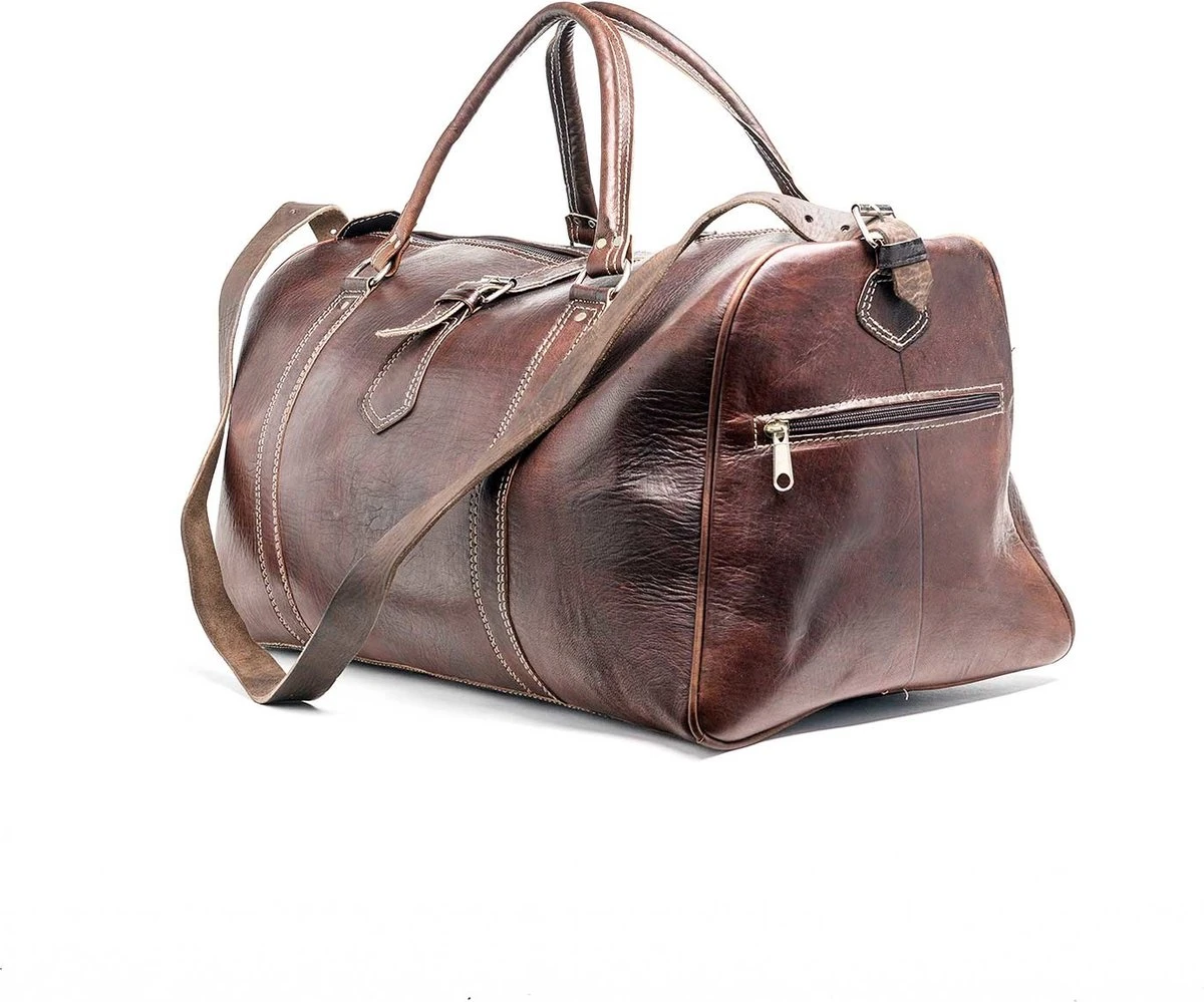 Deze grote leren bruine weekendtas is ideaal voor een weekend of weekje weg. Reis in stijl met deze luxe hand gestikte traveller. Het hoofdvak heeft een grote rits, hierdoor kan de tas helemaal open en kunt u gemakkelijk bij uw spullen. Daarnaast heeft de tas nog twee vakken met een handige rits zodat u uw paspoort of andere kleinere items gemakkelijk kan opbergen en snel bij de hand heeft. U kunt de tas dragen met de 2 handvatten op de bovenzijde of met de lange verstelbare en afneembare schouderband. De tas is 53 x 33 x 28 cm en heeft een literinhoud van 50 liter. Reis stijlvol en gemakkelijk met deze hand gestikte weekendtas gemaakt van echt koeienleer! Komt in de leerkleuren cognac, bruin en zwart. Kijk ook eens naar de andere musthaves van Studs & Stones!