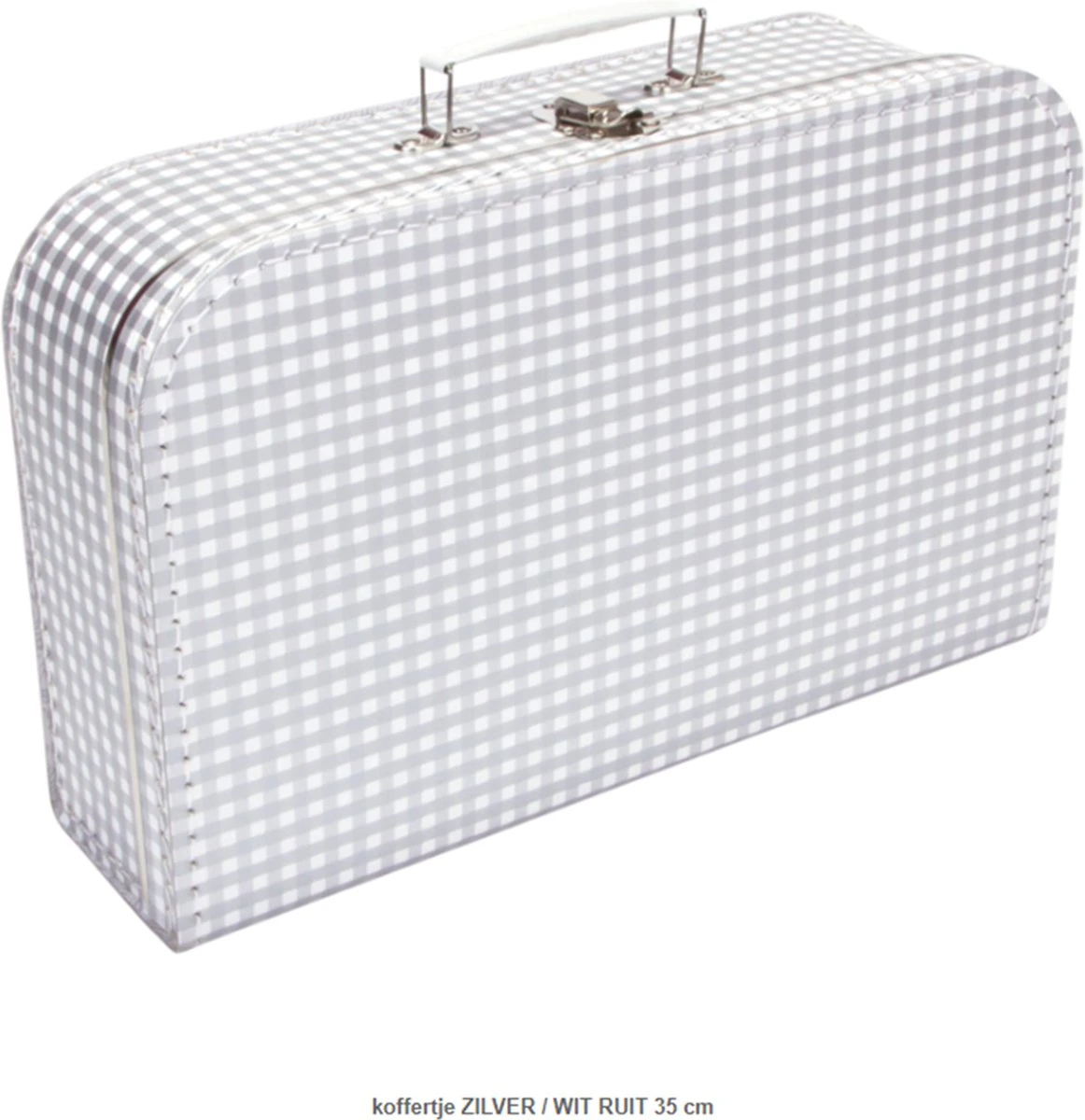 De koffer van 35 cm is A4 formaat en daar past makkelijk een setje kleren, tandenborstel en de favoriete knuffel van jouw kindje in.