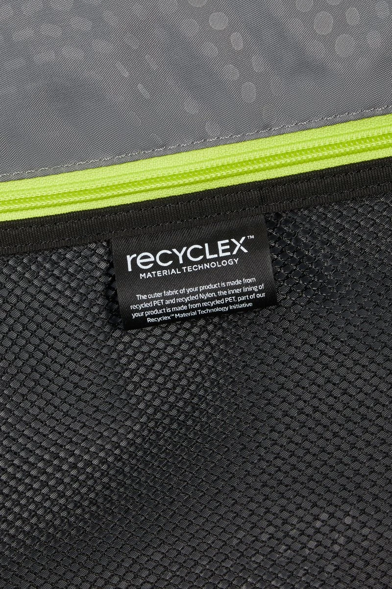 • Binnen en buitenstoffen gemaakt van 100% gerecycleerd PETflessen onderdeel van Recyclex TM-materiaal.