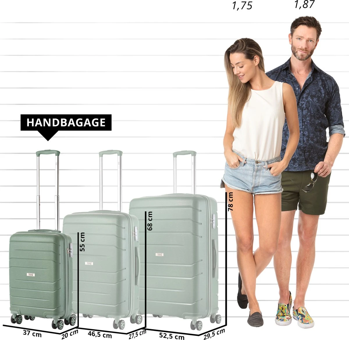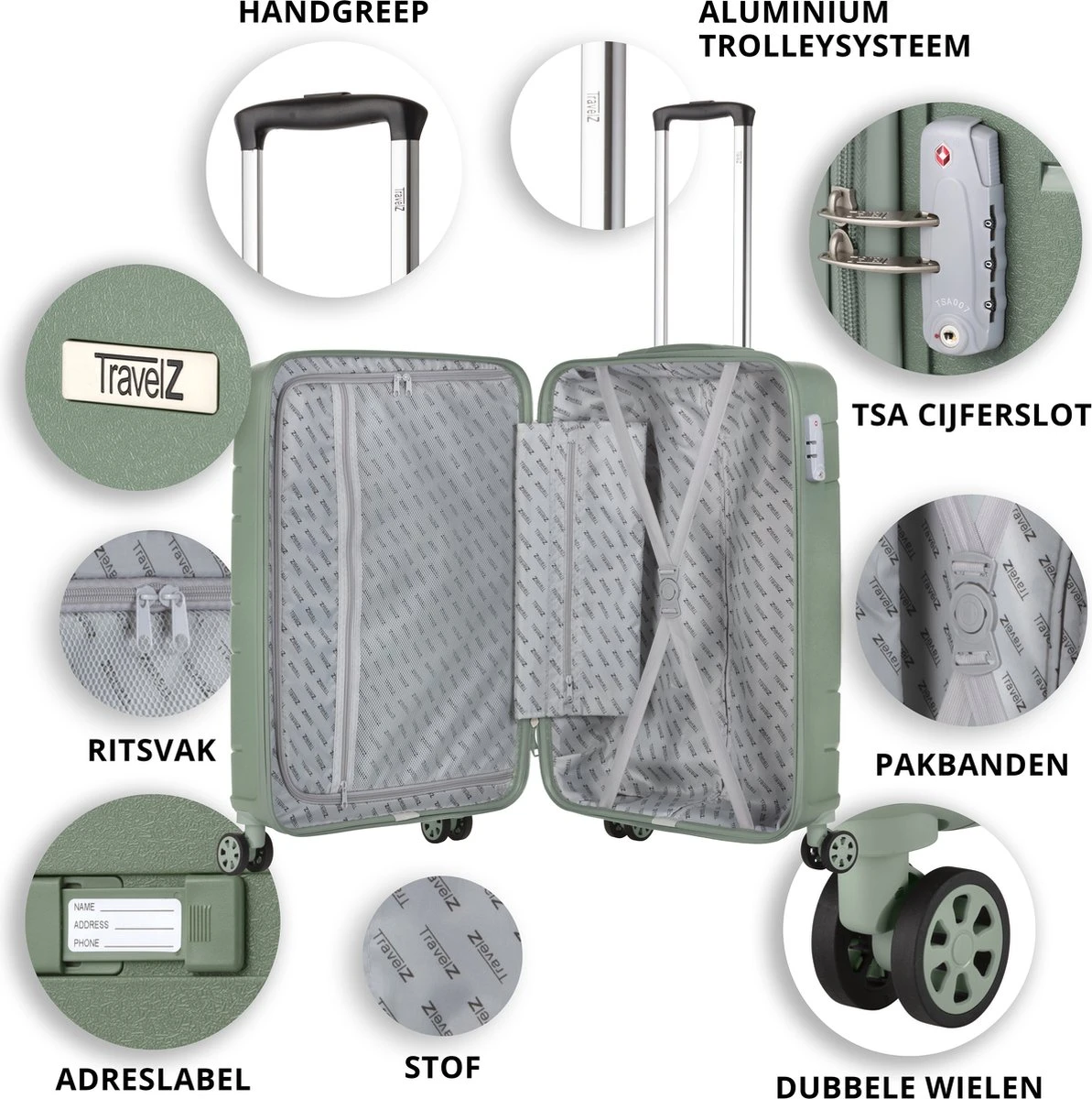 De TravelZ Big Bars is al jaren één van de best verkochte koffers van het Nederlandse merk TravelZkoffers. De Big Bars koffers zijn een echte lichtgewicht, erkend met een internationaal TSA-cijfercombinatieslot, soepele trekstang in verschillende standen voor lange en kleine personen, 4 dubbele wielen die volledig rondraaien, een compleet interieur met ritsvak en spanbanden en gemaakt uit ijzersterk polypropyleen. Voordeel van dit materiaaltype is dat het materiaal meeveert en hierdoor bij een enorme impact geen inslag krijgt. Meerdere koffers? Zoek op de TravelZ Big Bars kofferset en pak je prijsvoordeel bij twee of drie koffers. Bekijk kritisch welk formaat koffer je qua afmetingen en literinhoud nodig hebt voor de reis. Afmeting is incl wielen.