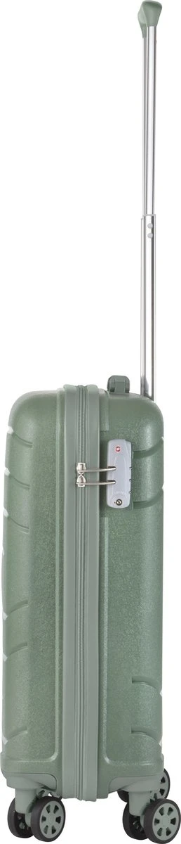 De handbagage, middenmaat koffer en grote reiskoffer bezitten allen 4 dubbele wielen die 360graden om hun as draaien. Bij een zware belasting van een volle koffer, blijft de koffer zeer wendbaar. Handig op minder egale ondergronden.